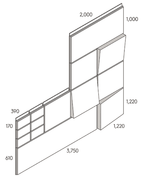 Dri-Design Shadow는 개별 패널을 다양한 깊이로 확장하여 텍스처 또는 패턴의 동적 변형을 생성할 수 있습니다. Shadow 금속시트의 최대 깊이는 100mm입니다.