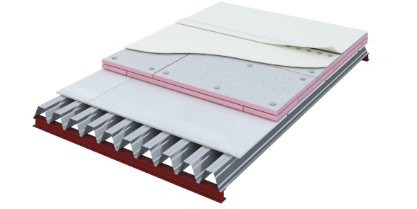 Roof Deck Plate 위에 경질의 다양한 단열재를 설치하거나 Roof Deck Panel을 설치한 후 시트로 마감하는 건식 공법으로 기후의 영향을 받지 않아 공사기간을 단축할 수 있습니다. 기계적 고정공법인 고인발 고정볼트 및 Grip-HookTM 디스크를 결합하여 시트를 고정해 내풍성과 시공성이 우수합니다.